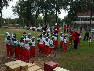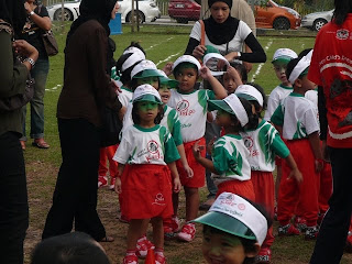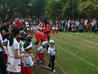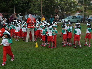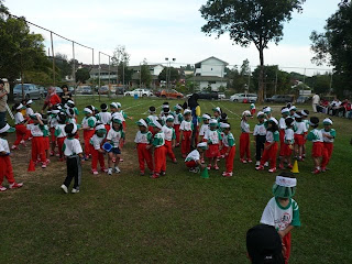 The theme for sport day 2010 is "Green Our World". You could see kids with green uniform everywhere... we had so much fun as most of the kids and their parents are sporting enough to participate in the events... competitive yet sporting...