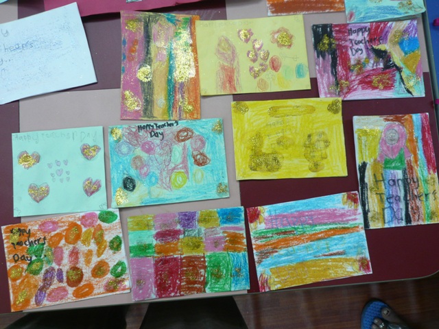 It's Teacher's day... this day are intended to be the special day for appreciation of teachers around the world... The kids at the center along with their class teacher had prepared some colorful cards to celebrate the day... thank you kids and also thank you to parents for the lovely gifts!