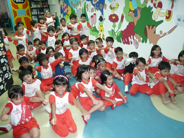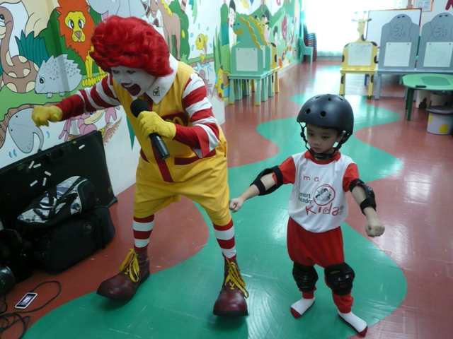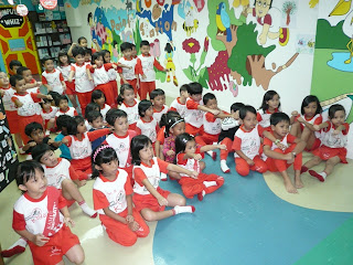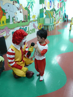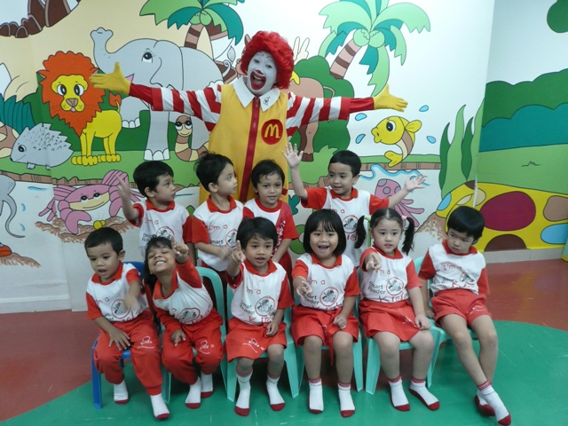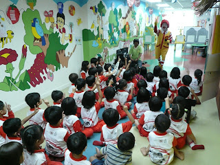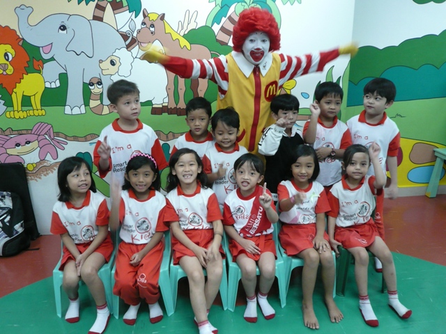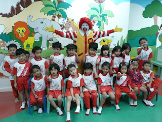 Recently, Ronald McDonald and the crew paid a short visit to our center... while with us, they had showed some slides to the kids on safety matters i.e. proper way riding a bus & safety equipment for riding a bicycle... at the end of the session... we didn't miss a chance to take a class photo with Ronald...