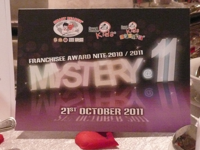 The dinner event, themed Mystery@11... tells by itself when we were all caught by surprise at 11pm when performers in Smart Reader Kids uniform came out and performed on stage... it was quite entertaining!
