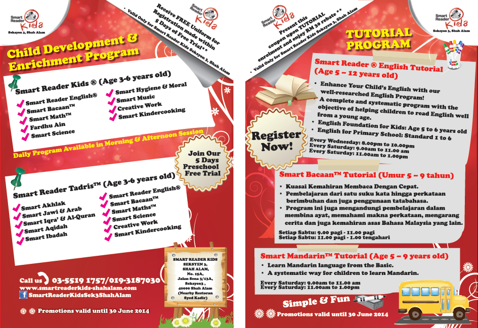 * Promotions valid only for Smart Reader Kids Seksyen 3 Shah Alam (1 April to 30 June 2014)